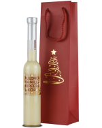 Unser cremig-zarter Vanillekipferl-Likör in weihnachtlicher Geschenktüte verpackt.