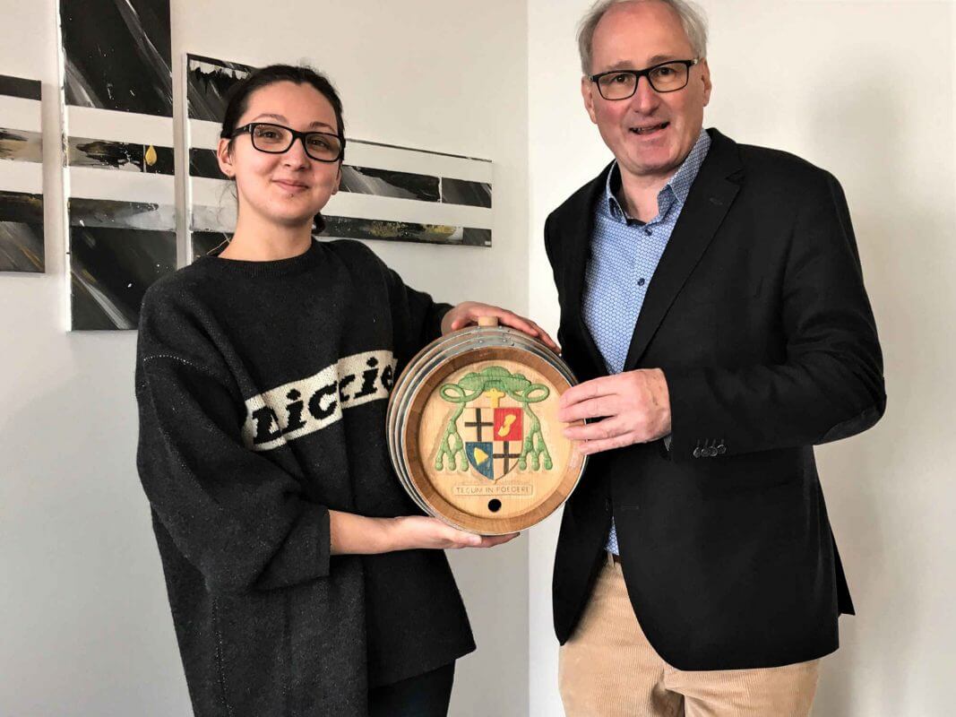 Ein kleines Weinfass zur Begrüßung des neuen Fuldaer Bischofs Dr. Michael